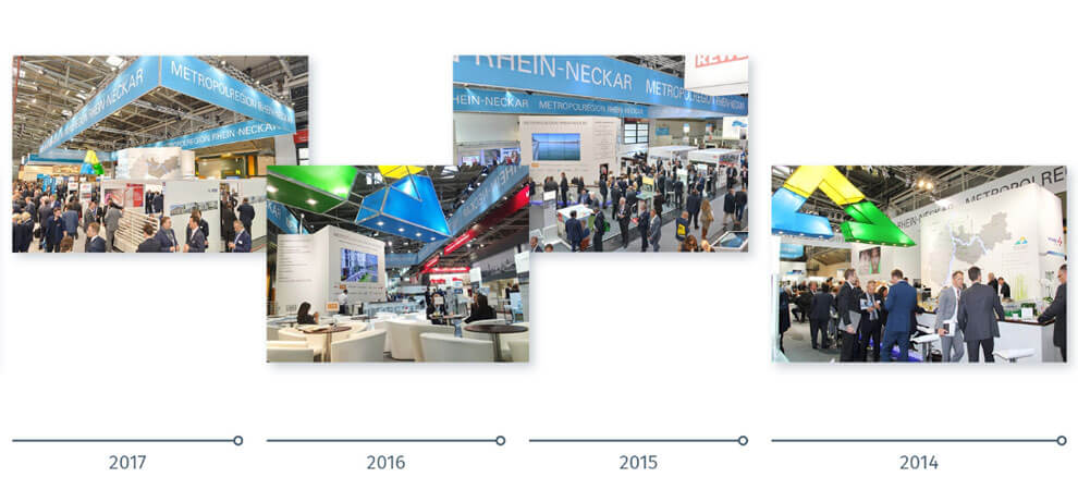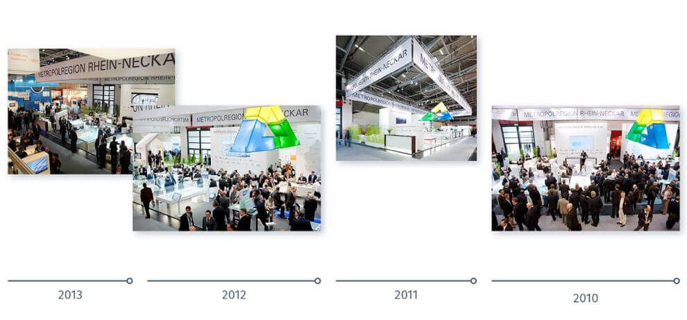 Die Metropolregion Rhein-Neckar GmbH gehört mit zu den Kunden, mit denen wir am längsten zusammenarbeiten. Das erste Mal haben wir für MRN einen Messestand im Jahr 2004 entwickelt und konzipiert. Und was sollen wir sagen – eins ist immer gleichgeblieben: Die hervorragende Zusammenarbeit mit dem MRN-Team. Wir freuen uns jedes Jahr aufs Neue auf unser Wiedersehen!